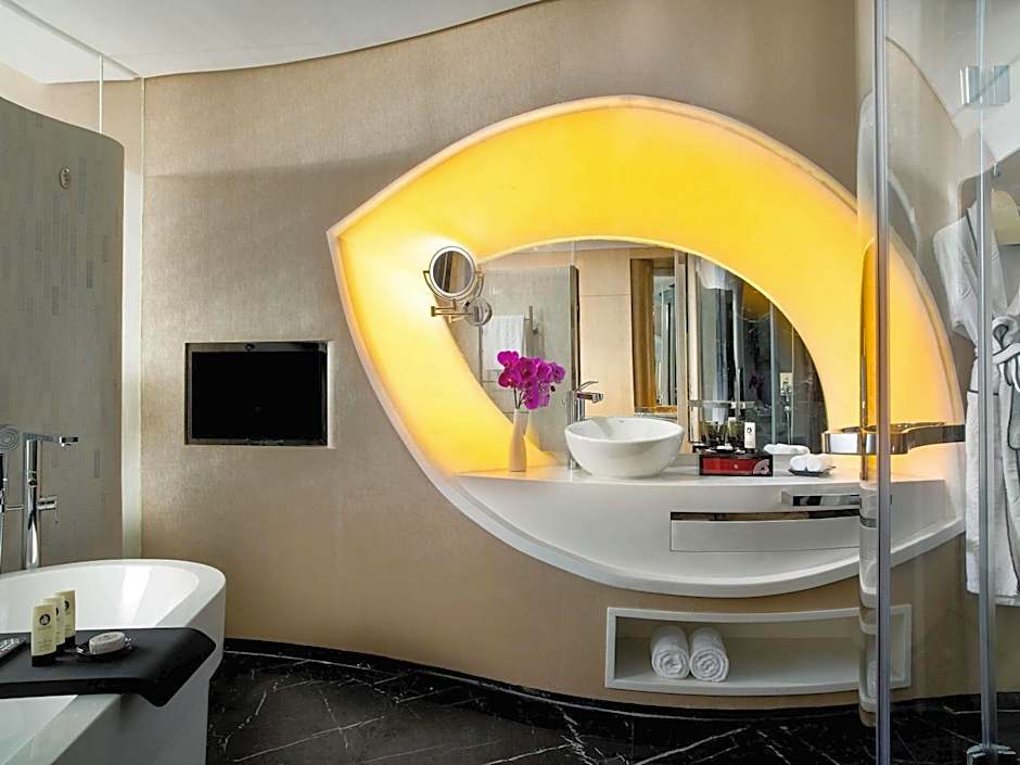 Located on floor 45 - 48, the room offers complimentary high speed internet access, 1080P HDTV, selection of international TV channels and HD movies, Bose music system, MyBed™ and 90 degree floor-to-ceiling windows.